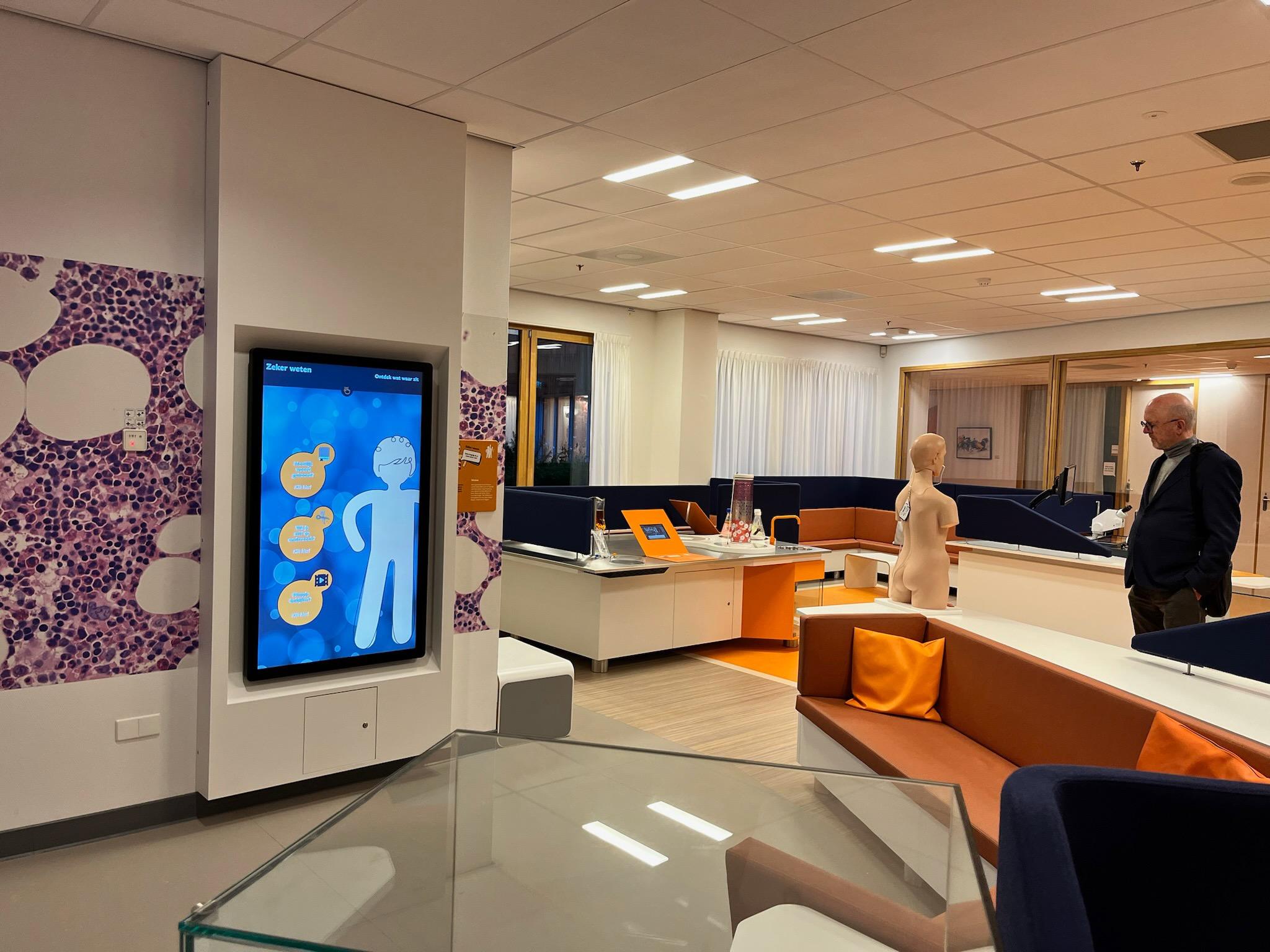 Kinderen en jongeren kunnen zelf over hun ziekte en behandeling leren op de 'ontdekplek', en daar kunnen ze ook hun klas uitnodigen om die de juiste info te geven. Er staat zelfs een echte scanner, minus de radio-straling, maar met alle geluiden en het rol-platform, zodat kinderen in alle rust uitgebreid kunnen voorbereid worden op radio-therapie. Als je kan zien hoe papa of mama even in de scanner geschoven worden, verkleint dat wellicht de drempel om het zelf ook te durven. In Gasthuisberg zij wij al blij met de muziektherapie-ruimte, maar de 'opnamestudio' van de muziekids is toch nog net iets cooler...